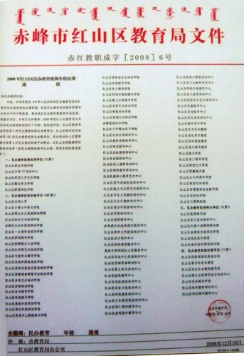>>>2008赤红教职成字(2008)6号文件中唯一评优的作文学校