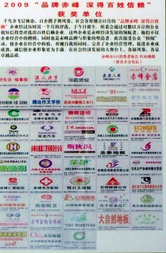 >>>2009被赤峰市消协红山晚报列为“品牌赤峰”行列